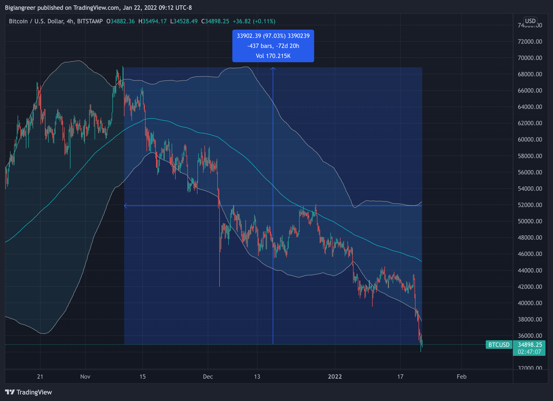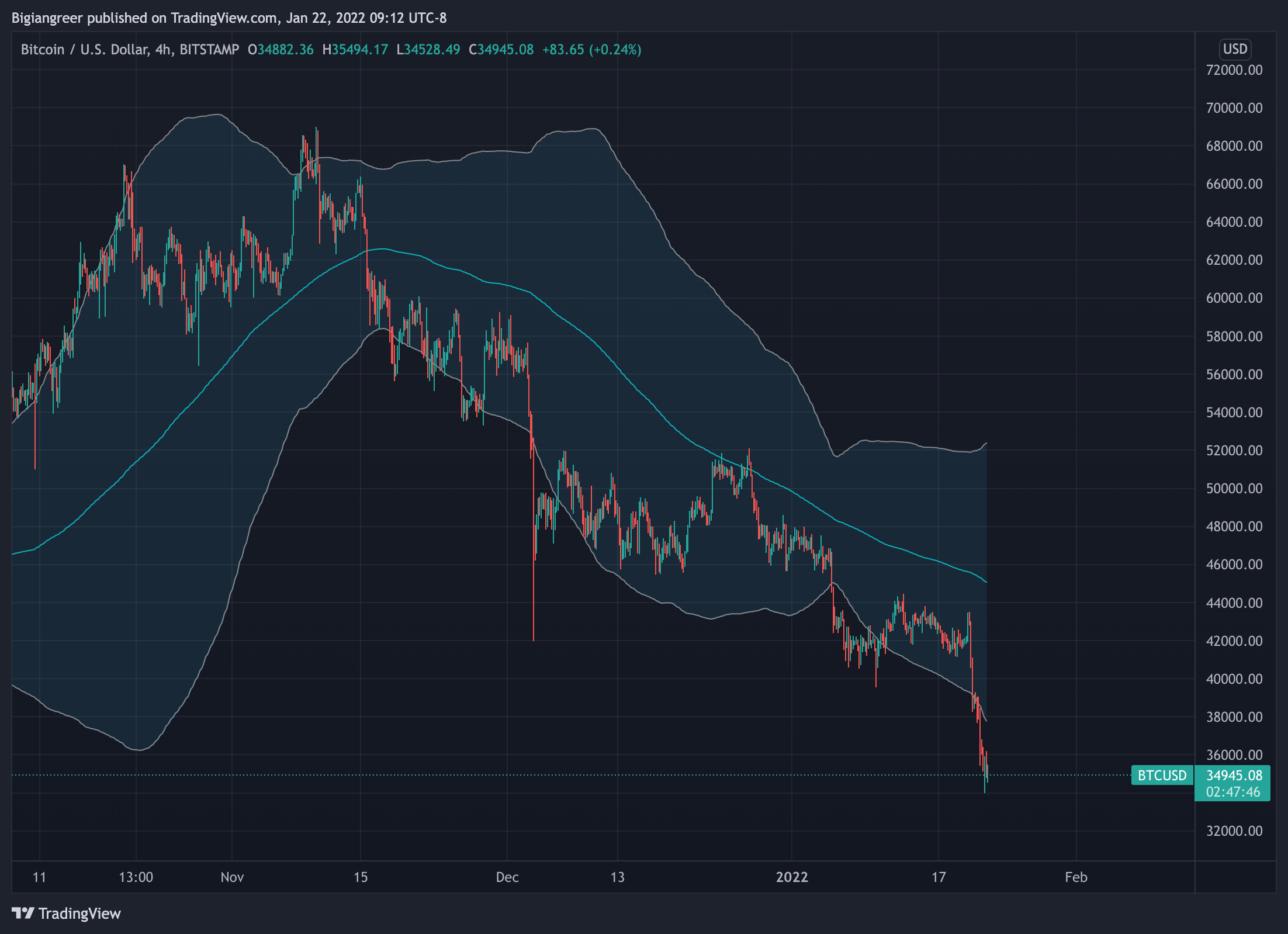 They are currently oversold. Bollinger bands are the lines that surround the charts in Figures 1 and 2. Put simply, when the price goes below the lower bound of the Bollinger band, it is a signal to buy.